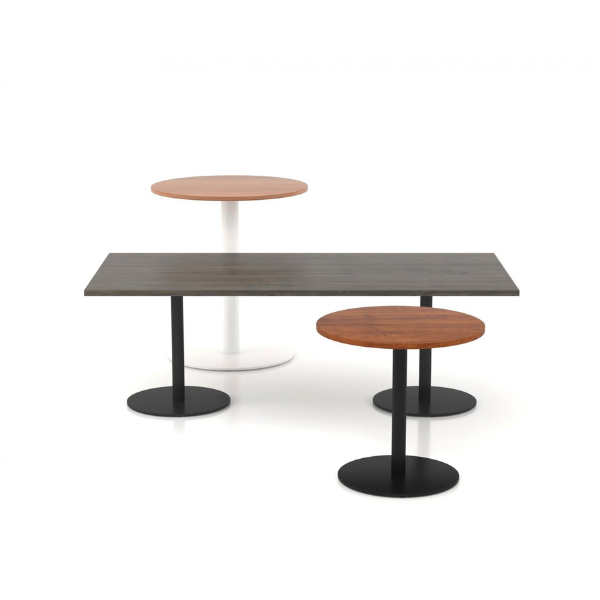 The sleek, minimalist DISK table series features versatile pieces suitable for breakrooms, shared areas, and meeting rooms. Available in various finishes and colours, each design features a durable base that supports 25 mm tops in both round and square formats. The lock pin upright column and floor levellers provide stability, while optional power modules, USB, and data points make it practical for busy spaces.